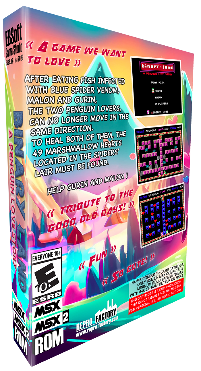 BINARY LAND MSX is a recode of Hudson Soft's BINARY LAND game for the Nintendo Famicom (c) 1985, made from scratch.